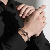 無骨さと洗練さを兼ね備えた、ホースシュー(蹄鉄)モチーフのチェーンブレスレット。