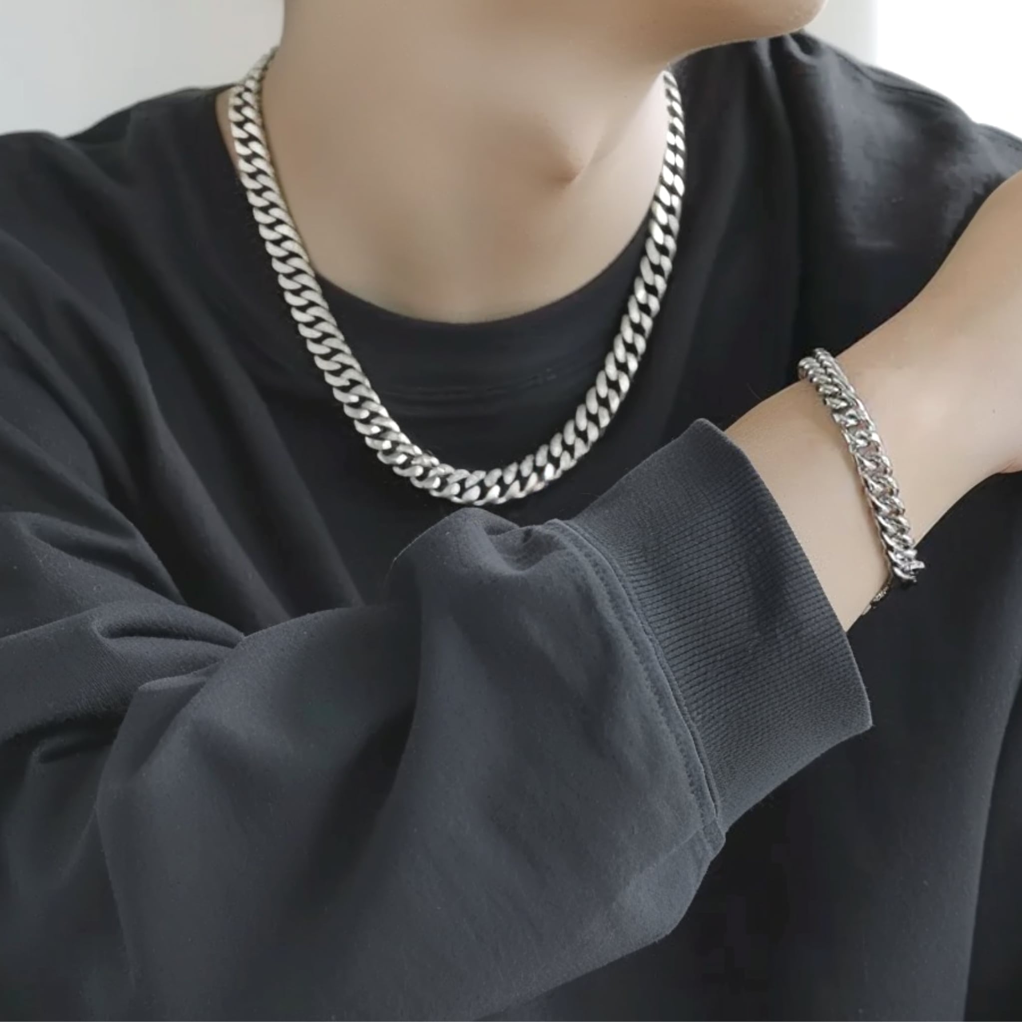 シンプルながらも存在感のあるシルバーチェーンブレスレットは、男女問わず使えるユニセックスデザインで、どんなスタイルにもぴったりです。